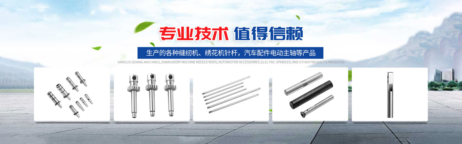由本廠生產的各種縫紉機、繡花機針桿,汽車配件電動主軸,以及使用于紡織機、皮革機、傳真機、印刷機、鞋機、眼鏡片磨機等各種機床上的軸套類配件產品,以其高標準、高精度、高質量的特點,頗受客戶信賴。